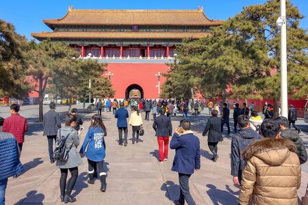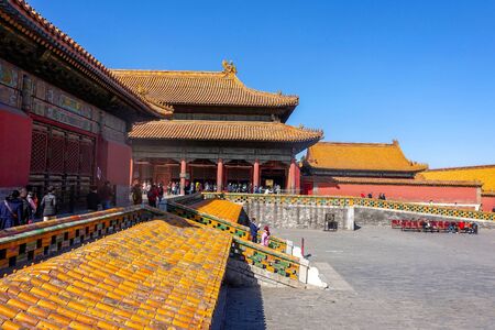 BEIJING, CHINA - MARCH 11, 2016: Forbidden City. People visit the Forbidden city, it was the Chinese imperial palace from the Ming dynasty to the end of the Qing dynasty.