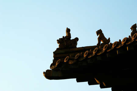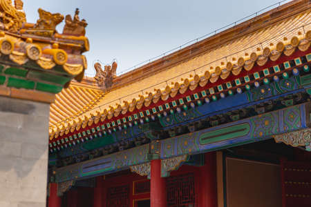 Chinese temple roof in Beijing, China. Traditional Chinese architecture in China.