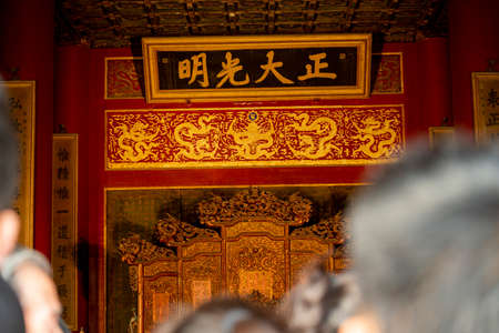 Beijing, China - November 19, 2019: The forbidden city in beijing. The Zhaoxian Temple. Richly decorated Buddhist temple from the Qing dynasty. thousands of people visit the city every day