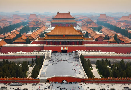 Step into the heart of Beijing's rich history with this captivating image of the Forbidden City. The architectural marvel stands tall, boasting imperial splendor and historical majesty. As the former imperial palace, it holds centuries of Chinese culture and tradition within its walls. The image captures the intricate details of the palace's stunning architecture, from the imposing red walls to the ornate rooftops. The Forbidden City is a UNESCO World Heritage site, a testament to its significance as a cultural treasure. Perfect for showcasing the grandeur of ancient Chinese architecture, this image is a must-have for history enthusiasts, travelers, and those seeking to be captivated by the wonders of the past