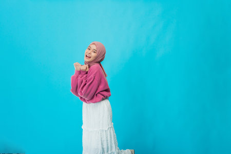Portrait of a happy young asian muslim woman wearing hijab