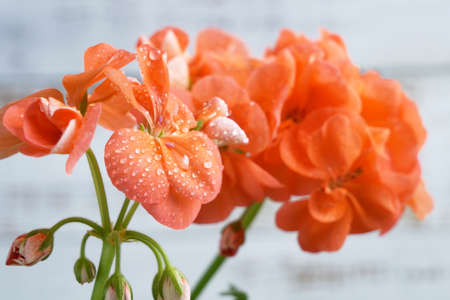 Close up Geranium or pelargonium flowers. Copy space, selective focus