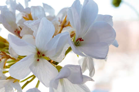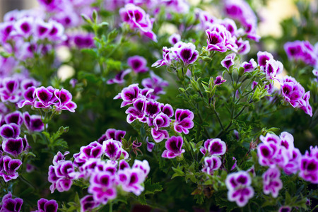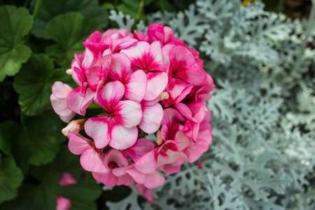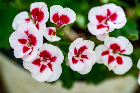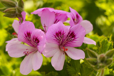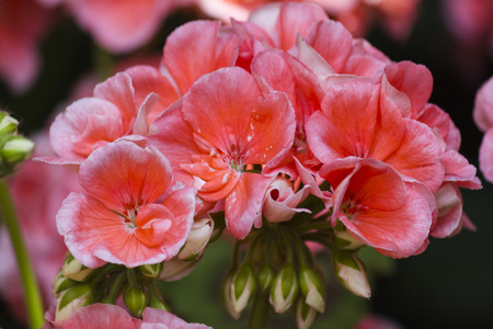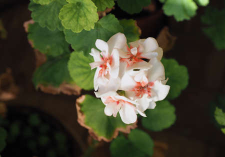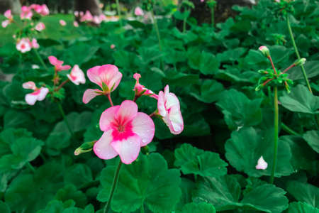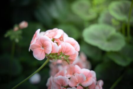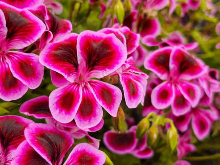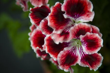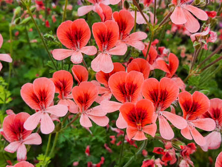 Pelargonium flowers closeup. Horseshue pelargonium or Pelargonium zonale. Selective focus