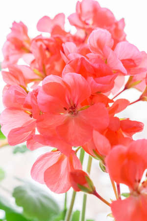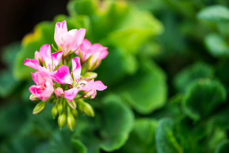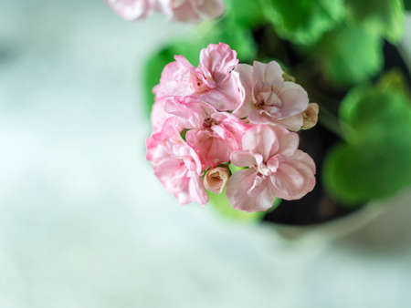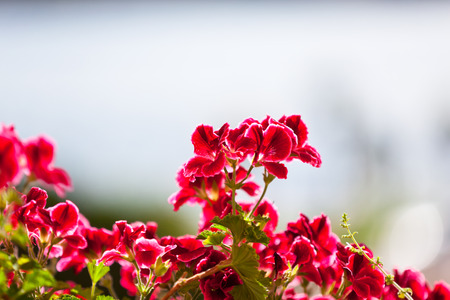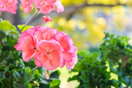 Close up Geranium or pelargonium flowers. Copy space, selective focus