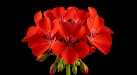 Macro photography of some red zonal geranium flowers. Captured at the Andean mountains of central Colombia.