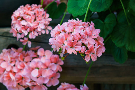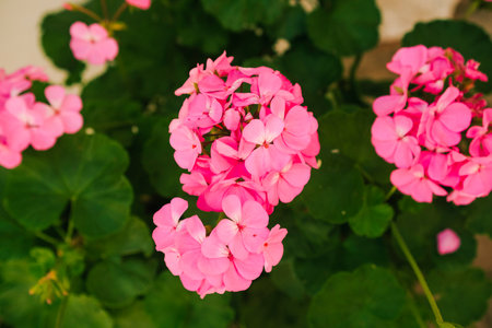 Garden pelargoniums with pink flowers, Geranium Zonal