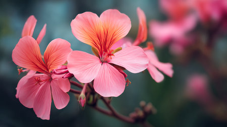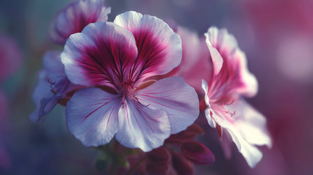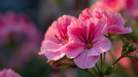 Vibrant pink geranium flowers in soft light, a floral beauty