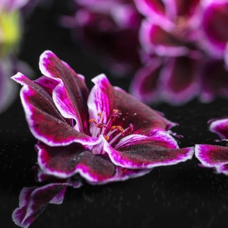 beautiful spa concept of geranium flower in reflection water, Royal Pelargonium, closeup