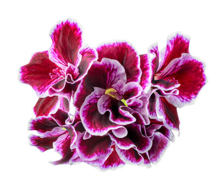 bouquet of lilac geranium or Royal Pelargonium flower is isolated on white background, close up