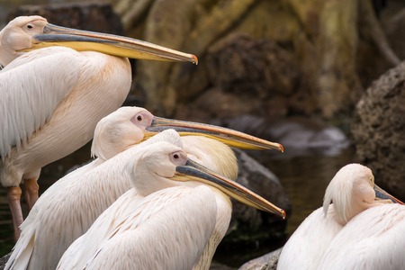 group of pelecanus philippensis at giza zoo, egypt