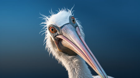 a white pelican stands gracefully in the background of this hyper-detailed rendering, created in the style of realistic and precise zbrush art. the caricature faces add a touch of whimsy to the scene, while the realistic blue skies provide a stunning backdrop. with its 8k resolution, this artwork showcases dreamlike creatures in a truly mesmerizing way. ai generated