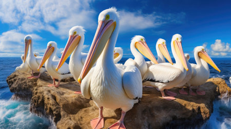 Beautiful group of huge pelicans.