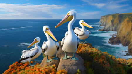 A closeup shot of the group of pelicans on blurred background