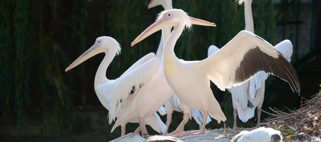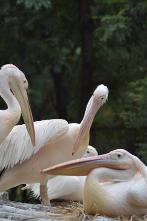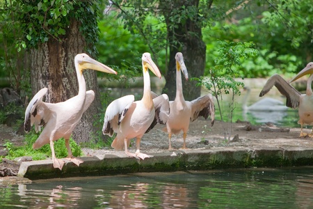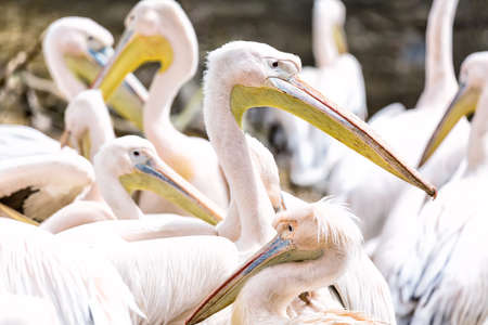 A group of white Pelicans bird in the zoo
