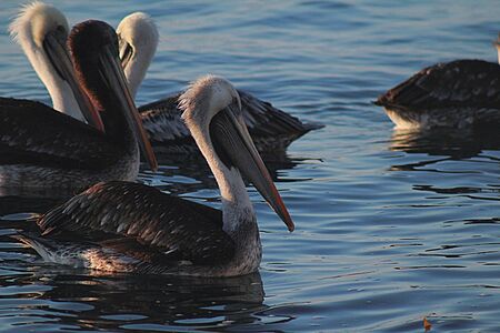 Pelicans swim near south coast of Peru