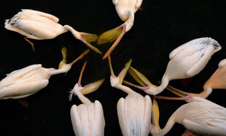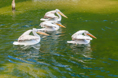 group of pelecanus philippensis at giza zoo, egypt