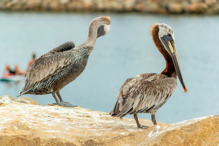 A beautiful shot of brown pelicans