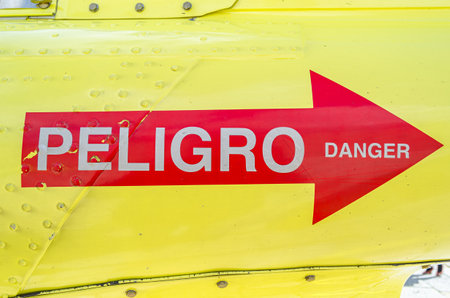 SAN LORENZO DE EL ESCORIAL, SPAIN - MARCH 23, 2014: Detail of a medicalized helicopter of the Medical Emergency Service of the Community of Madrid, SUMMA 112