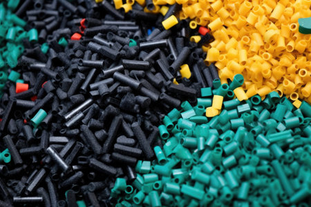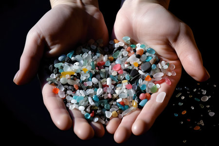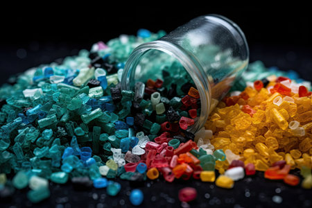 close-up of microplastic pellets, illustrating their small size, created with generative ai