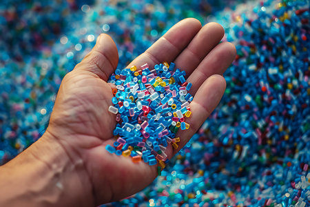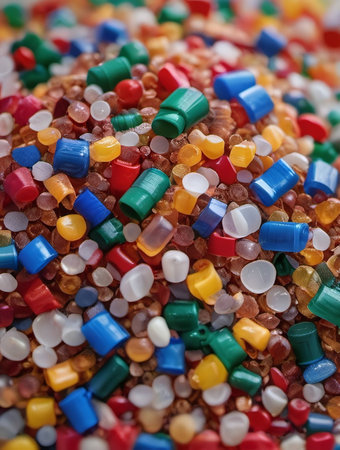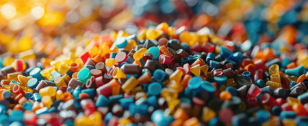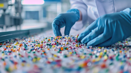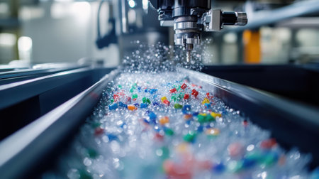 Innovative plastic recycling process dropping colorful plastic pieces
