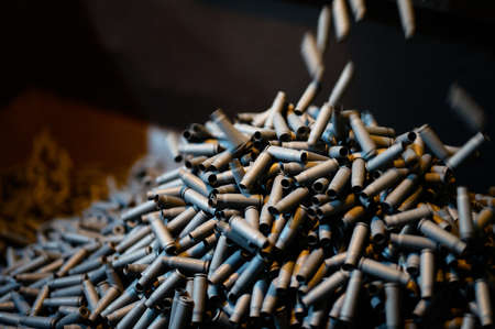 Shell casings fall down in ammunition production workshop