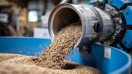 Close up of wood pellet burner in industrial setting for biomass energy production