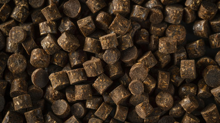 Pellets of pressed wood, solid backdrop. Dark version.