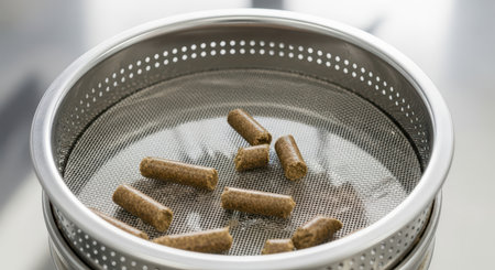 Pellets in stainless steel sifter for filtration and refinement process