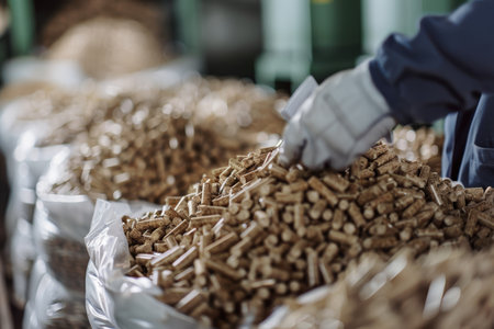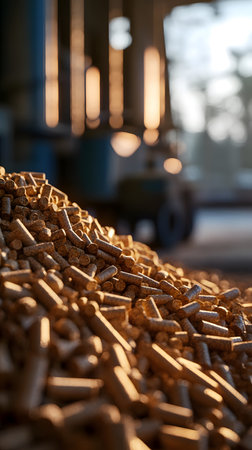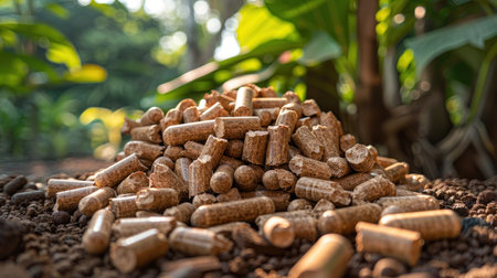 Wood pellet production s impact deforestation scene with pile of pellets in forest