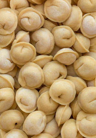 Raw Meat dumplings Russian traditional pelmeni with meat. Close up photo.