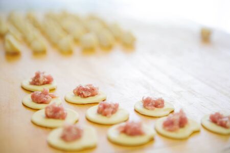 Homemade dumplings stuff is made on the board is not a professional cook at home.