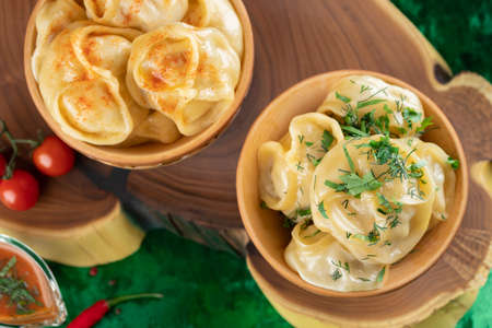 Oriental national traditional dumplings Manty horizontal