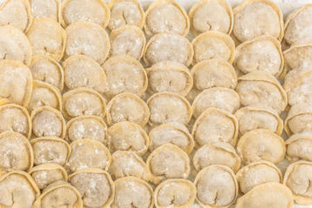 Fresh homemade raw dumplings background texture.
