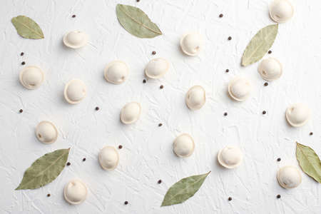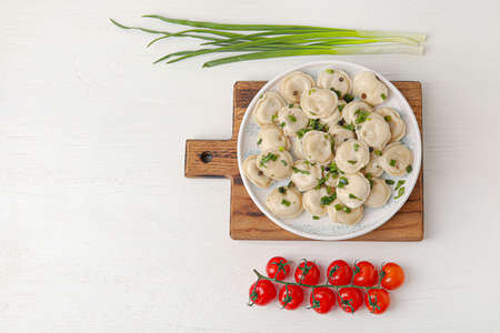 Dumplings on a white background, texture of dumplings, Russian national cuisine, top view