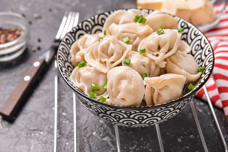 Big dish of boiled meat dumpling - pelmeni