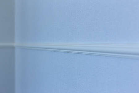 Decorative white cornice on blue wall, home room decor, design and architecture concept.