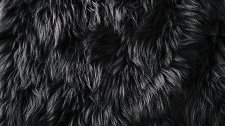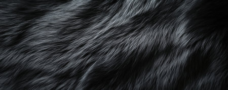 Black fur texture, close-up detailed view. Natural pattern background concept