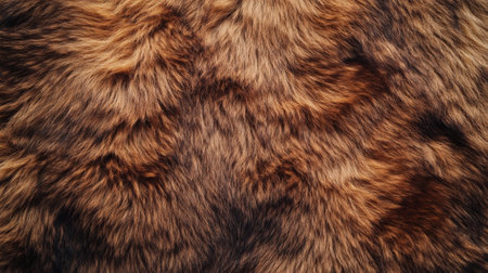 a bear fur texture from a top view, showing thick, dense brown fibers, creating a rugged, wild look ideal for outdoor-themed designs.