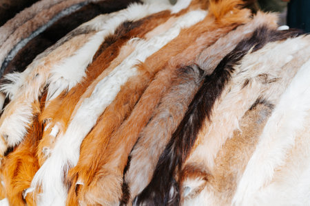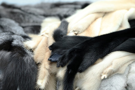 Finished skins from animals. Mink, arctic fox skins from animals. mink farm. Fur coat, dear
