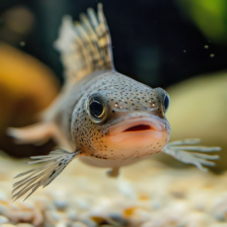 A fish swims gracefully in an aquarium filled with clear water and soft gravel showcasing its vibrant colors and distinctive features.