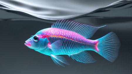 AI Generated. Exotic luminescent fish with electric blue and pink hues underwater