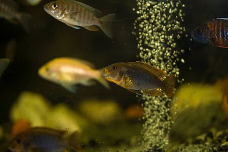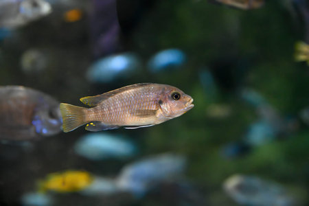 Aulonocara, or African acara Aulonocara is a genus of tropical freshwater fish from the Cichlid family of the order perch-like swimming in water. high quality photo