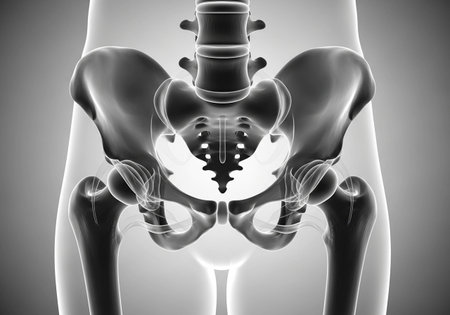 Digital illustration of pelvic girdle in colour background