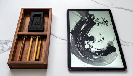 A seamless blend of past and present, where the timeless elegance of traditional calligraphy tools meets the boundless potential of modern digital technology.