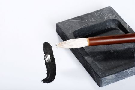 Chinese ancient cultural products inkstone on a white background, closeup of photo
