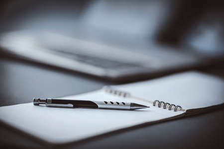 Pen on the notepad in the office. Shallow depth of field.