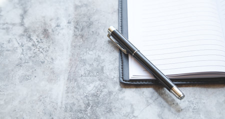 Notebook and pen close up.