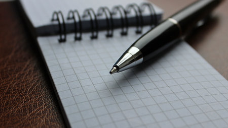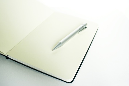 Photo of a blocknotes with a metallic pen above it