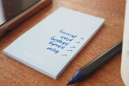 a pen and small daily note on a black table