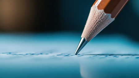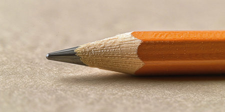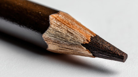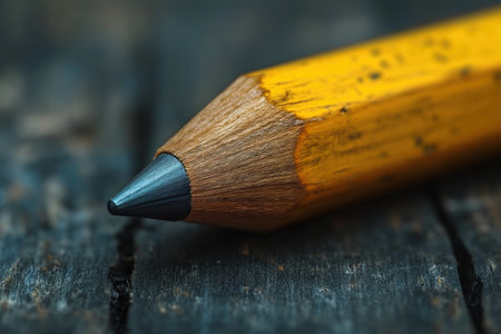 Close up view of sharpened pencil showcasing its wooden texture and graphite tip, highlighting craftsmanship and detail of writing instrument. image evokes sense of creativity and precision